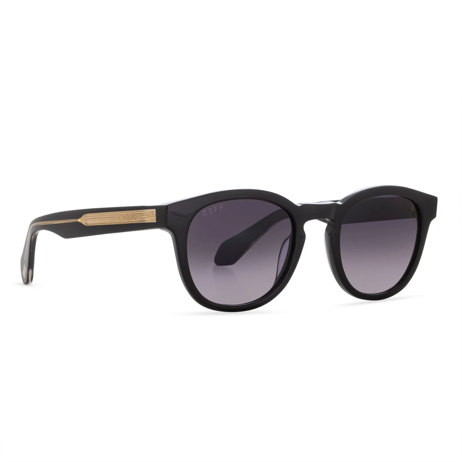 Elevate your look with these elegant shades, providing a rounded shape and intricate metal detailing on the sides.